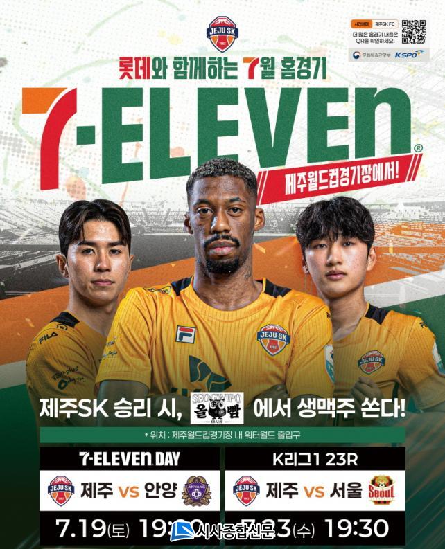Á¦ÁÖSK´Â ¿À´Â 7¿ù 19ÀÏ(Åä) ¿ÀÈÄ 7½Ã Á¦ÁÖ¿ùµåÄŰæ±âÀå¿¡¼ ¿¸®´Â ¾È¾ç°úÀÇ ÇϳªÀºÇà K¸®±×1 2025 22¶ó¿îµå Ȩ °æ±â¸¦ '¼¼ºìÀÏ·¹ºì µ¥ÀÌ(7-ELEVEN DAY)'·Î °³ÃÖÇÑ´Ù. Á¦ÁÖSK´Â Ȩ °æ±â °³ÃÖ ½Ã ÈÄ¿ø»ç¿Í Áö¿ª»çȸ°¡ ÇϳªµÇ´Â ºê·£µå µ¥À̸¦ °³ÃÖÇϰí Àִµ¥ À̳¯ °æ±â´Â Á¦ÁÖSKÀÇ ´ëÇ¥ÀûÀÎ ÈÄ¿ø»çÀ̸ç, °æ±âÀå ¸ÅÁ¡ ÀÔÁ¡ ¾÷üÀÎ ¼¼ºìÀÏ·¹ºì°ú ÇÔ²² ¶Ú´Ù.