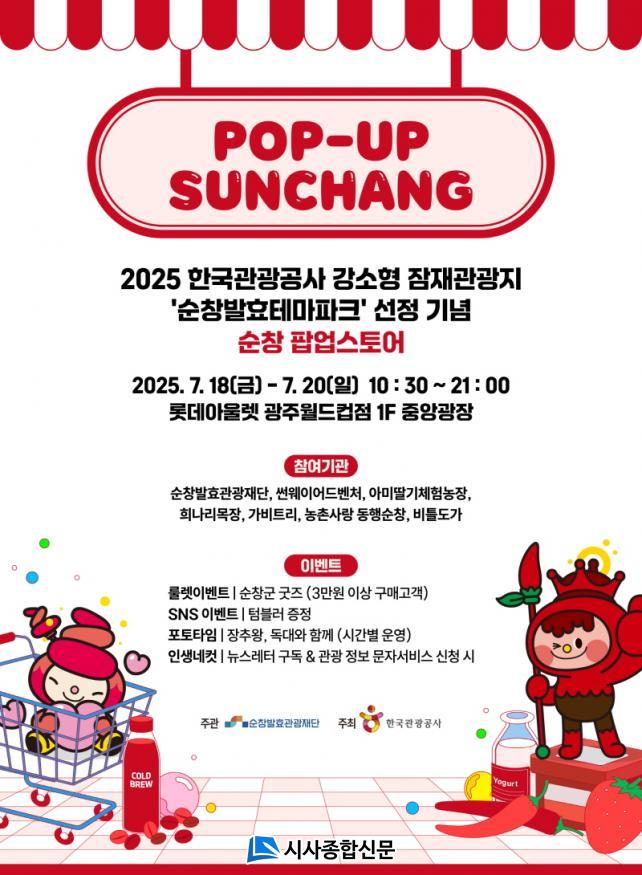 À̹ø ÆË¾÷½ºÅä¾î´Â 2025³â Çѱ¹°ü±¤°ø»ç °¼ÒÇü ÀáÀç°ü±¤Áö·Î¡®¼øÃ¢¹ßÈ¿Å׸¶ÆÄÅ©¡¯°¡ ¼±Á¤µÈ °ÍÀ» ±â³äÇØ, ¼øÃ¢ °íÀ¯ÀÇ ¹ßÈ¿ ¹®È¿Í °ü±¤ÀÚ¿ø, Áö¿ª »óǰ, ij¸¯ÅÍ ±ÂÁî µîÀ» µµ½Ã¹Î¿¡°Ô ¼Ò°³Çϰí Áö¿ª °ü±¤ È«º¸¿Í ¸¶ÄÉÆÃÀ» È®´ëÇϱâ À§ÇØ ¸¶·ÃµÆ´Ù.