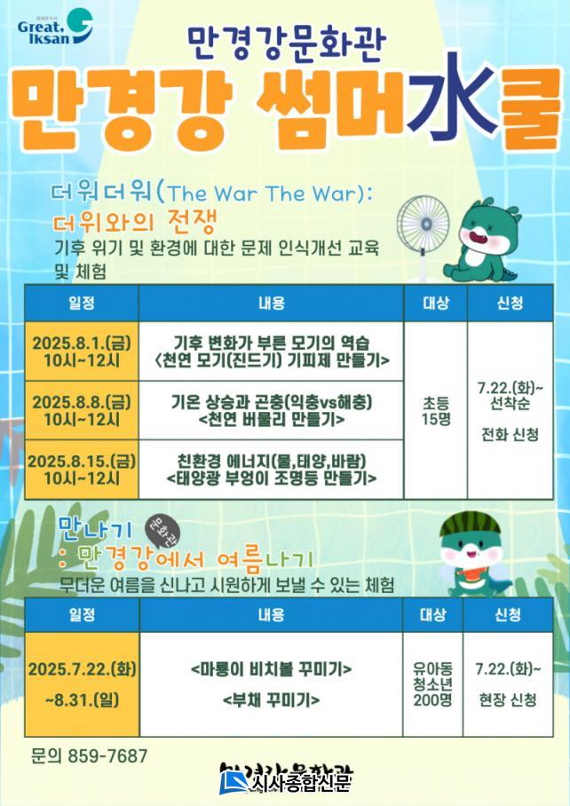 '¸¸³ª±â(¸¸°æ°¹®È°ü¿¡¼ ¿©¸§³ª±â)'´Â 8¿ù 31ÀϱîÁö »ó½Ã ¿î¿µµÈ´Ù. '¸¶·æ' ½ºÆ¼Ä¿¸¦ Ȱ¿ëÇØ ºñÄ¡º¼°ú ºÎ並 ²Ù¹Ì´Â Ȱµ¿À¸·Î, ¾î¸°À̵éÀÌ ½±°í Àç¹ÌÀÖ°Ô Âü¿©ÇÒ ¼ö ÀÖ´Ù. Âü¿© ½Åû µî ´õ¿í ÀÚ¼¼ÇÑ ³»¿ëÀº ¸¸°æ°¹®È°ü(063-859-7687)À¸·Î ¹®ÀÇÇÏ¸é µÈ´Ù.