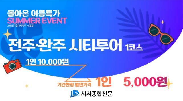 ¿©¸§ Ư°¡ À̺¥Æ®´Â ÀÌ´Þ 7¿ù ¸»ºÎÅÍ 8¿ù ¸»±îÁö Ãâ¹ßÇÏ´Â ÀüÁÖ¡¤¿ÏÁÖ ½ÃƼÅõ¾î »óǰ¿¡ Àû¿ëµÇ¸ç, 1Àδç 5000¿ø¿¡ ÀÌ¿ëÇÒ ¼ö ÀÖ´Ù. ÀÌ¿Í °ü·Ã Áö³ÇØ Ã¹ ½Ãµ¿À» °Ç ¡®ÀüÁÖ¡¤¿ÏÁÖ ½ÃƼÅõ¾î¡¯´Â ÀüÁÖ½Ã¿Í ¿ÏÁÖ±ºÀÇ ´ëÇ¥ °ü±¤Áö¸¦ ÇÏ·ç¿¡ µÑ·¯º¼ ¼ö ÀÖ¾î À̿밴µé¿¡°Ô °¡¼ººñ ¿©Çà»óǰÀ¸·Î È£ÆòÀ» ¹Þ¾Æ¿Ô´Ù.
