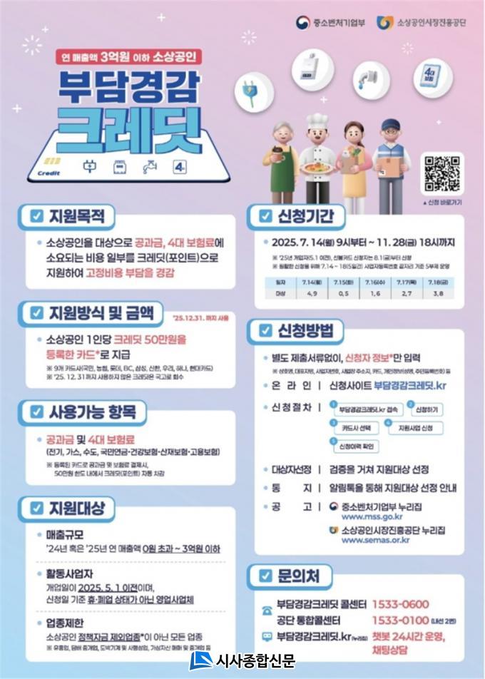 Áö¿ø ´ë»óÀÚ¿¡°Ô´Â °ø°ú±Ý(Àü±â‧°¡½º‧¼öµµ) ¹× 4´ëº¸Çè·á(±¹¹Î¿¬±Ý‧°Ç°º¸Çè‧°í¿ëº¸Çè‧»êÀ纸Çè) ³³ºÎ¿¡ »ç¿ëÇÒ ¼ö ÀÖ´Â 50¸¸¿ø »ó´çÀÇ Å©·¹µ÷ÀÌ Áö±ÞµÈ´Ù. º°µµ ¼·ù Á¦ÃâÀº ÇÊ¿äÇÏÁö ¾ÊÀ¸¸ç, »ç¾÷ÀÚµî·Ï¹øÈ£¸¦ ºñ·ÔÇÑ °£´ÜÇÑ Á¤º¸¸¦ ÀÔ·ÂÇÏ¸é ½ÅûµÈ´Ù.