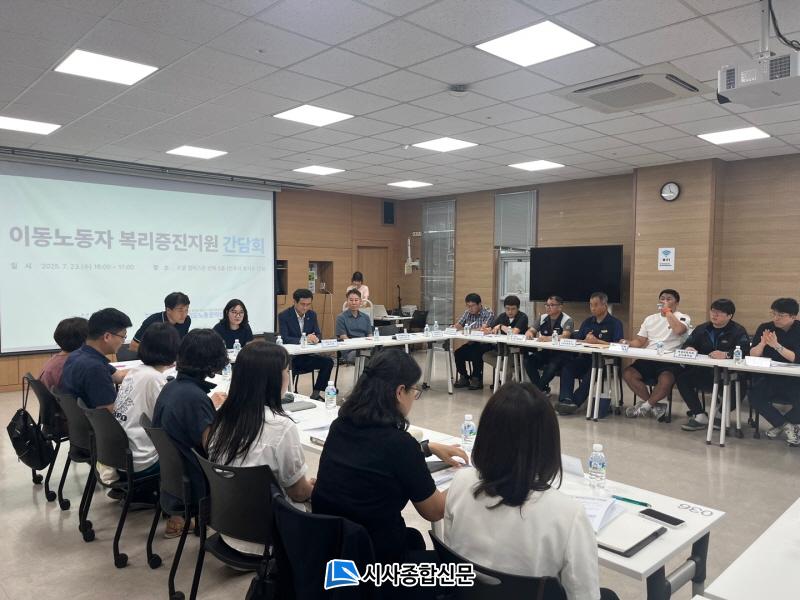 °£´ãȸ¿¡¼´Â ¹è´Þ´ëÇà¾÷ü Á¾»çÀÚ µî ´Ù¾çÇÑ À̵¿³ëµ¿ÀÚµéÀÌ °Þ°í ÀÖ´Â Çö½ÇÀûÀÎ ¾î·Á¿ò°ú °³¼± ¿ä±¸°¡ ÁýÁßÀûÀ¸·Î Á¦±âµÇ¾ú´Ù. ÁÖ¿ä °ÇÀÇ»çÇ×À¸·Î´Â ¡ã È޽İø°£ È®Ãæ ¹× ±Ù¹«È¯°æ °³¼± ¡ã ±³Åë¾ÈÀü ±³À° ¹× º¸Çè Áö¿ø °È ¡ã Æø¿°¡¤ÇÑÆÄ ´ëÀÀ ¾ÈÀü¿ëǰ Áö¿ø ¡ã ³ëµ¿ÀÚ ±ÇÀͺ¸È£ ¹× »ó´ã È®´ë µîÀÌ ÀÖ¾ú´Ù.