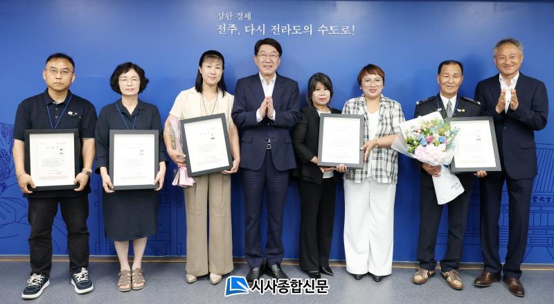 »ç´Ü¹ýÀÎ ÀüÁÖ½ÃÀÚ¿øºÀ»ç¼¾ÅÍ(ÀÌ»çÀå ÃÖÀÌõ)´Â 23ÀÏ ÀüÁÖ½Ãû 3Ãþ ¼ÒȸÀǽǿ¡¼ ¡®2025³â 2ºÐ±â À¸¶äÀÚ¿øºÀ»çÀÚ ½Ã»ó½Ä¡¯À» ¿°í, Æò¼Ò ÀÚ¿øºÀ»ç¸¦ ÅëÇØ ÀÌ¿ô»ç¶ûÀ» ½ÇÃµÇØ¿Â ÀϹÝÀÎ 4¸í°ú û¼Ò³â 1¸í µî ÃÑ 5¸íÀÇ ÀÚ¿øºÀ»çÀÚ¿Í 1°³ ´Üü¿¡ ÀüÁÖ½ÃÀå ǥâÀ» ¼ö¿©Çß´Ù.