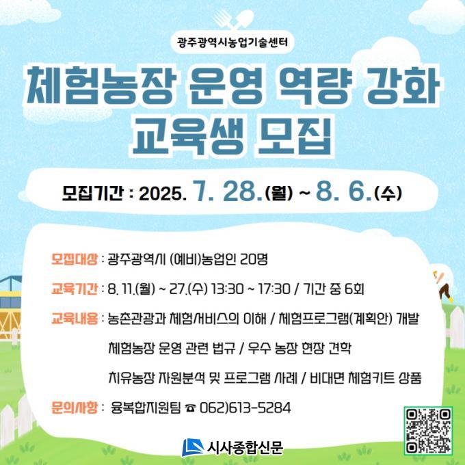 ±¤ÁÖ³ó¾÷±â¼ú¼¾ÅÍ´Â À̹ø ±³À°À» ÅëÇØ ³ó°¡ÀÇ °æÀï·Â Çâ»ó°ú Áö¼Ó°¡´ÉÇÑ Ã¼Çè³óÀå ¿î¿µ ±â¹ÝÀ» ´ÙÁú °èȹÀÌ´Ù.
