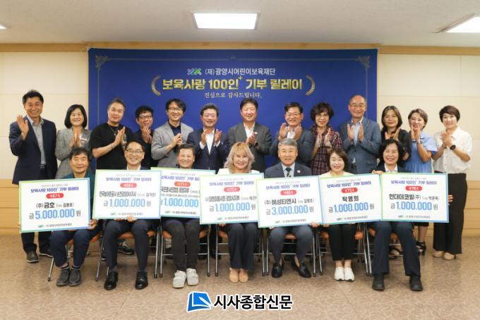À̹ø ±âŹ½Ä¿¡¼´Â ÃÑ 1,400¸¸ ¿øÀÇ ÈÄ¿ø±ÝÀÌ Àü´ÞµÆ´Ù. ±âŹÀÚ ¹× ±âŹ±Ý¾×Àº ¡â¢ß±ÝÈ£(´ëÇ¥ ±è¿ëÈ£) 500¸¸ ¿ø, ¡â¢ßÇý¼ºÆ¼¾Ø½Ã(´ëÇ¥ ±è¿µÁ¶) 300¸¸ ¿ø, ¡âÇѱ¹³ó¾îÃ̰ø»ç ¼øÃµ±¤¾ç¿©¼öÁö»ç(Áö»çÀå ±è±âÁø) 100¸¸ ¿ø, ¡âÇö´ëµ¥ÄÚºô¢ß(´ëÇ¥ ¹Ú¹®¿Á) 100¸¸ ¿ø, ¡â(»ç)Çѱ¹ÇÁ·Î»çÁøÇùȸ ±¤¾çÁöºÎ(ÁöºÎÀå À±¶ó°æ) 100¸¸ ¿ø, ¡â(»ç)´ëÇѹ̿ë»çȸ ±¤¾ç½ÃÁöºÎ(ÁöºÎÀå À̱ÙÀÚ) 100¸¸ ¿ø, ¡âŹ¿µÈñ ±¤¾ç½Ã ³ó¾÷±â¼ú¼¾ÅÍ ¼ÒÀå 100¸¸ ¿ø, ¡â¢ßÅ¿î(´ëÇ¥ À¯¼ºÁ¾) 100¸¸ ¿øÀÌ´Ù.