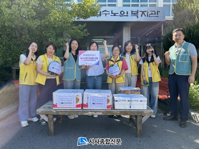¿©¼ö±¤¾çÇ׸¸°ø»ç ÀÓÁ÷¿øµéÀº Áø³²½ÃÀå »óÀεé°ú Á¤À» ³ª´©¸ç Á÷Á¢ ÀåÀ» º¸°í, ¾î¸£½ÅµéÀÇ °Ç°À» °í·ÁÇÑ ½Å¼±ÇÑ Á¦Ã¶ °¨ÀÚ, ¼ö¹Ú, ¸êÄ¡, °íµî¾î µî ³ó¼ö»ê¹°À» ±¸¸ÅÇØ º¹Áö°ü¿¡ Àü´ÞÇß´Ù. Àü´ÞµÈ ¹°Ç°Àº °æ·Î½Ä´ç°ú Èñ¸Á¹äÂ÷¿¡¼ ¾î¸£½ÅµéÀÇ ½Ä»ç Áغñ¿¡ »ç¿ëµÉ ¿¹Á¤À̸ç, ¹«´õ¿î ¿©¸§Ã¶ °Ç°À» ì±æ ¼ö ÀÖµµ·Ï ¿µ¾ç ¹ë·±½º¸¦ °í·ÁÇØ ÁغñµÆ´Ù.