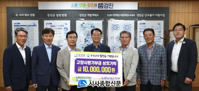 À̹ø »óÈ£ ±³Â÷±âºÎ´Â °Áø-º¸¼º µÎ Áö¿ªÀÇ ¿ìÀǸ¦ ´ÙÁö°í °íÇâ»ç¶û±âºÎ ¹®È È®»ê¿¡ Çù·ÂÀ» À§ÇØ °Áø³óÇù, ¹ú±³³óÇù, ȸõ³óÇù ¹× ³óÇù±ºÁöºÎ ÀÓÁ÷¿øÀÇ ¶æÀ» ¸ð¾Æ °¢ 1,000¸¸¿øÀÇ ±âºÎ¾×ÀÌ ¸¶·ÃµÆ´Ù.