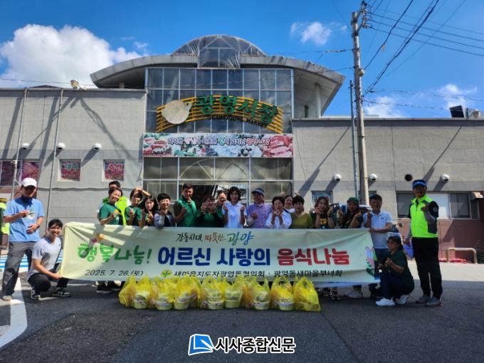 ¾È¿µ¼÷ ±¤¿µµ¿ »õ¸¶À»ºÎ³àȸ ȸÀå ¿ª½Ã ¡°¾î·Á¿î ÀÌ¿ô¿¡°Ô Á÷Á¢ À½½ÄÀ» Àü´ÞÇÏ¸ç Æø¿° ´ëºñ ¾ÈºÎµµ ÇÔ²² »ìÆñ´Ù¡±¸ç ¡°º¹Áö »ç°¢Áö´ë ¾ø´Â, ¿À´Ãµµ ±âºÐ ÁÁÀº µ¿³× ±¤¿µµ¿À» ¸¸µé±â À§ÇØ ÃÖ¼±À» ´ÙÇϰڴ١±°í ¸»Çß´Ù.