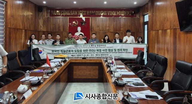 ÀÌ¿¡ Áø¾È±ºÀº ¿Ü±¹ÀÎ °èÀý±Ù·ÎÀÚÀÇ ½Å±Ô ü°á±¹ È®º¸¸¦ À§ÇØ Áö³ 29ÀÏ º£Æ®³² ²ÎÀÀ¾ÆÀ̼ºÀ» ¹æ¹®ÇØ ¿Ü¹«ºÎ Àå°ü ¹× °ü°èÀÚµé°ú °£´ãȸ¸¦ °®°í ¾÷¹«Çù¾à(MOU) ü°áÀ» À§ÇÑ »çÀü ÇùÀǸ¦ º»°ÝÀûÀ¸·Î ÁøÇàÇß´Ù.