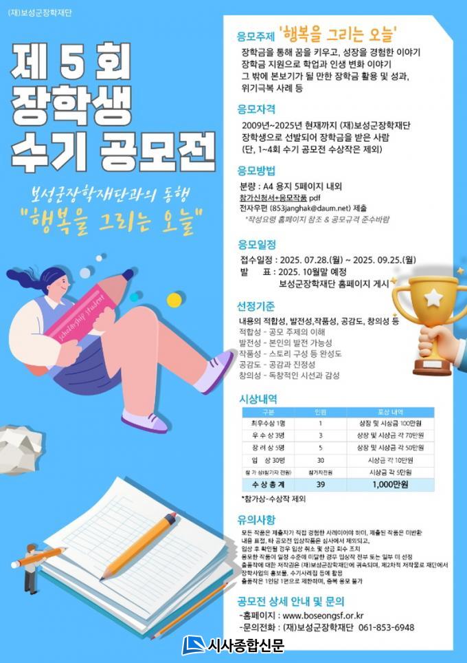 °ø¸ð ´ë»óÀº 2009³âºÎÅÍ 2025³â±îÁö ÀåÇлýÀ¸·Î ¼±Á¤µÈ °³ÀÎÀ¸·Î, ¼ö»óÀº ÃÖ¿ì¼ö»ó 1¸í(100¸¸ ¿ø), ¿ì¼ö»ó 3¸í(°¢ 70¸¸ ¿ø), Àå·Á»ó 5¸í(°¢ 50¸¸ ¿ø), ÀÔ»ó 30¸í(°¢ 10¸¸ ¿ø), Âü°¡»ó Àü¿ø(5¸¸ ¿ø) µî ÃÑ 39¸íÀ» ¼±Á¤ÇÒ ¿¹Á¤ÀÌ´Ù.