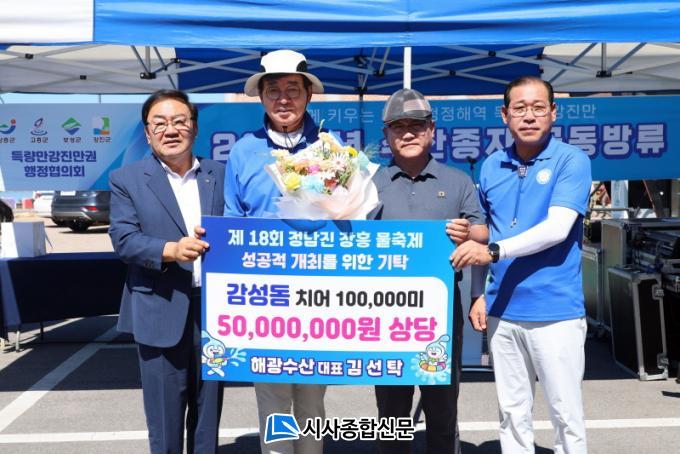 Áö¿ª ¾î¾÷Àεé°ú ÇØ¾ç °ü·Ã ´ÜüµéÀÌ °øµ¿À¸·Î Âü¿©ÇÑ ¹æ·ùÇà»ç¿¡¼´Â ÀåÈ°íÈº¸¼º¡¤°Áø 4°³ ±º µæ·®¸¸°Áø¸¸±ÇÇàÁ¤ÇùÀÇȸ 50,000¹Ì¿Í, ¼ö»êÁ¾ÀÚ»ý»ê¾÷üÀÎ ÇØ±¤¼ö»ê ±è¼±Å¹ ´ëÇ¥°¡ ±âºÎÇÑ 5õ¸¸ ¿ø »ó´çÀÇ °¨¼ºµ¼ Ä¡¾î 100,000¸¶¸®°¡ Ç®·È´Ù.