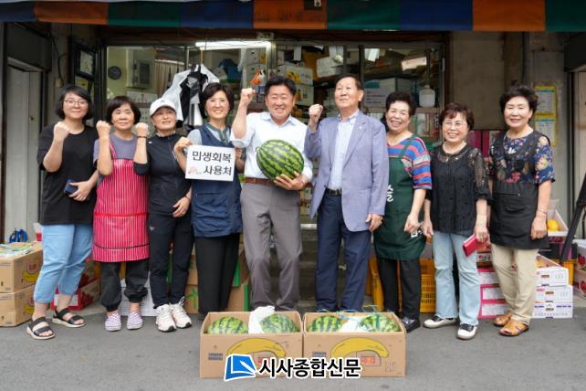 Àϵµ2µ¿ Áֹμ¾ÅÍ¿¡¼´Â ¼ÒºñÄíÆù Áö±Þ ¾÷¹«¸¦ ´ã´çÇÏ´Â °øÁ÷ÀÚµé°ú ºÀ»çȰµ¿¿¡ Âü¿©Çϰí ÀÖ´Â ÀÚ»ý´Üü ȸ¿øµéÀ» °Ý·ÁÇß´Ù. ¼ÒºñÄíÆù ½Åû Â÷ Áֹμ¾Å͸¦ ãÀº µµ¹Îµé¿¡°Ô´Â ¼ÒºñÄíÆùÀ» Àû±Ø ÀÌ¿ëÇØ´Þ¶ó°í ¿äûÇß´Ù.