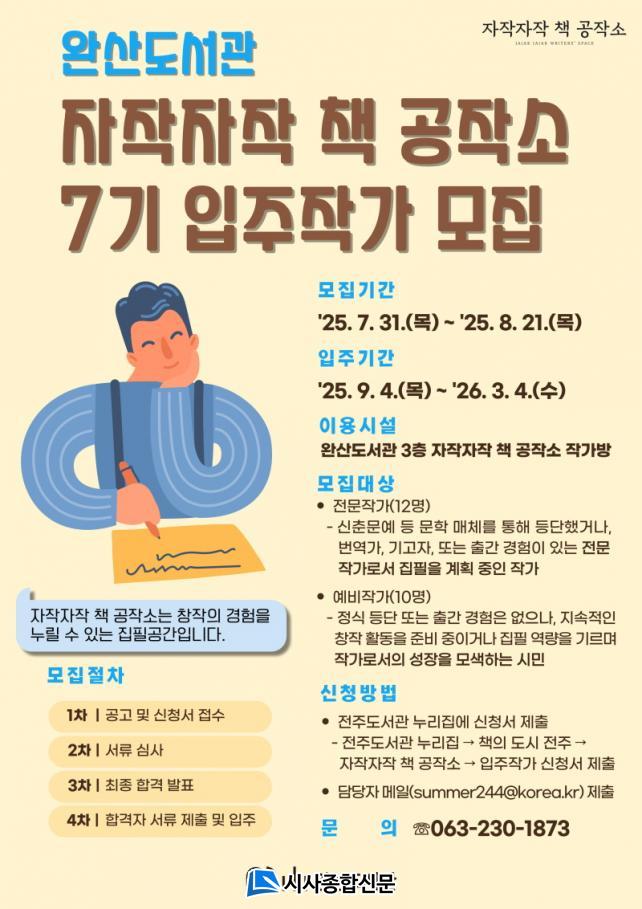 ÀüÁֽô ¿À´Â 8¿ù 21ÀϱîÁö ½Ã¹Î°ú ÀÛ°¡°¡ ÇÔ²² ¼ºÀåÇϴ âÀÛ °ø°£ÀÎ ¿Ï»êµµ¼°ü ³» ¡®ÀÚÀÛÀÚÀÛ Ã¥ °øÀÛ¼Ò¡¯ÀÇ 7±â ÀÔÁÖÀÛ°¡¸¦ °ø°³ ¸ðÁýÇÑ´Ù.