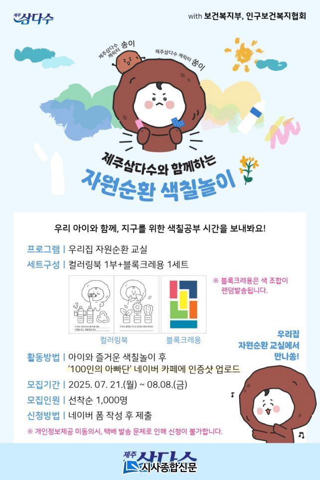 Á¦ÁÖ°³¹ß°ø»ç(»çÀå ¹é°æÈÆ)´Â Á¦ÁÖ»ï´Ù¼ö°¡ º¸°Çº¹ÁöºÎ »êÇÏ Àα¸º¸°Çº¹ÁöÇùȸ¿Í ÇÔ²² °¡Á· Ä£ÈÇü ȯ°æ ±³À° ÇÁ·Î±×·¥ ¡®¿ì¸®Áý ÀÚ¿ø¼øÈ¯ ±³½Ç¡¯À» ¿î¿µ, Âü¿© °¡Á¤À» ¸ðÁýÇÑ´Ù°í ¹àÇû´Ù.