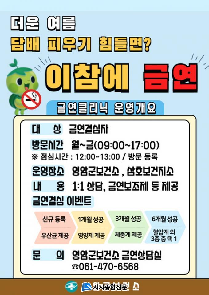 ¹«´õÀ§·Î ½Ç¿Ü Èí¿¬ÀÌ Â¥ÁõÀ¸·Î ´Ù°¡¿À´Â ¿©¸§Ã¶À» ±âȸ·Î »ï¾Æ ±Ý¿¬ °á½É¡¤½ÇõÇÒ °ÍÀ» ±Ç°íÇÏ°í ³ª¼± °Í. ¿µ¾Ï±ºº¸°Ç¼Ò¿Í »ïÈ£º¸°ÇÁö¼Ò¿¡¼ »ó½Ã ¿î¿µµÇ´Â ±Ý¿¬Å¬¸®´Ð¿¡¼´Â ¡ã1:1 »ó´ã ¡ã´ÏÄÚÆ¾ ÆÐÄ¡ µî ±Ý¿¬º¸Á¶Á¦ Áö±Þ ¡ãÀº´Ü µî Çൿ°È¹°Ç° Á¦°ø µîÀÌ ÀÌ·ïÁø´Ù.