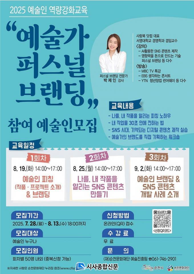 ¼øÃµ¹®ÈÀç´Ü °ü°èÀÚ´Â ¡°À̹ø ±³À°À» ÅëÇØ ¿¹¼úÀÎÀÌ ÀÚ½ÅÀÇ ºê·£µå¸¦ ¸¸µé°í, ½ºÅ丮¸¦ ´ã¾Æ È«º¸ÇÏ´Â ¹æ¹ýÀ» ¹è¿ï ¼ö ÀÖÀ» °ÍÀ¸·Î ±â´ëÇÑ´Ù¡±¸ç ¡°¼øÃµ¹®ÈÀç´Ü¿¡¼´Â ¾ÕÀ¸·Îµµ ¿¹¼úÀÎÀÇ Áö¼Ó°¡´ÉÇÑ ÀÚ¸³±â¹Ý ¸¶·ÃÀ» À§ÇÑ ±³À° Áö¿øÀ» °è¼Ó À̾ ¿¹Á¤ÀÌ´Ï ¸¹Àº °ü½É°ú Âü¿© ¹Ù¶õ´Ù¡±°í ¸»Çß´Ù.
