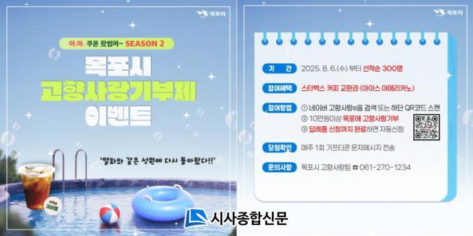 À̺¥Æ® ÁøÇà ¹æ½ÄÀº 1Â÷¿Í µ¿ÀÏÇϸç, 6ÀϺÎÅÍ ¸ñÆ÷ °íÇâ»ç¶û±âºÎÁ¦ Âü¿©ÀÚ¸¦ ´ë»óÀ¸·Î, ½Ã¿¡ 10¸¸ ¿ø ÀÌ»ó ±âºÎ ÈÄ ´ä·Êǰ±îÁö ½ÅûÇϸé ÀÚµ¿À¸·Î ÀÀ¸ðµÈ´Ù. ¼±Âø¼ø 300¸í¿¡ µµ´ÞÇÒ ¶§±îÁö ÁøÇàµÇ°í 5,000¿ø »ó´çÀÇ ½ºÅ¸¹÷½º ¸ð¹ÙÀÏ Ä¿ÇÇ ±³È¯±Ç(¾ÆÀ̽º ¾Æ¸Þ¸®Ä«³ë)À» °æÇ°À¸·Î ÁغñÇß´Ù.
