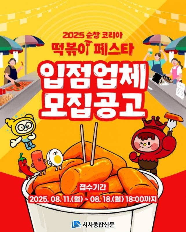 ÇÑÆí,¡®2025 ¼øÃ¢ ÄÚ¸®¾Æ ¶±ººÀÌ Æä½ºÅ¸¡¯´Â Àü±¹ÀÇ Àα⠶±ººÀÌ ºê·£µå¿Í ¼ûÀº ¸ÀÁý, ±×¸®°í ´Ù¾çÇÑ ºÐ½Ä Àü¹®Á¡µéÀÌ ÇÑÀÚ¸®¿¡ ¸ðÀÌ´Â ´ëÇѹα¹ ÃÖ°íÀÇ ºÐ½Ä ÃàÁ¦·Î, 11¿ù 15ÀϺÎÅÍ 16ÀϱîÁö ¼øÃ¢¹ßÈ¿Å׸¶ÆÄÅ©¿Í ¼øÃ¢ÀüÅë°íÃßÀå¹Î¼Ó¸¶À» ÀÏ¿ø¿¡¼ °³ÃÖµÉ ¿¹Á¤ÀÌ´Ù.