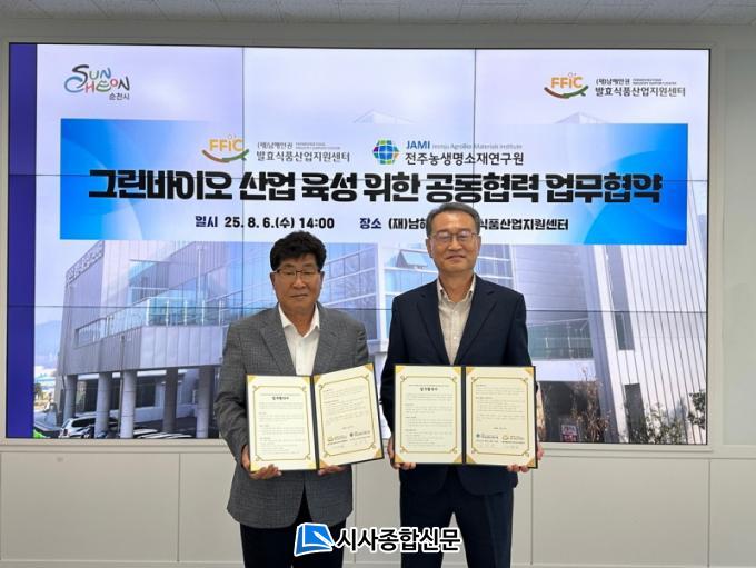 [½Ã»çÁ¾ÇսŹ® = Àå¹Î±Ô ±âÀÚ] (Àç)³²ÇؾȱǹßÈ¿½Äǰ»ê¾÷Áö¿ø¼¾ÅÍ(ÀÌ»çÀå ³ë°ü±Ô)´Â Áö³ 6ÀÏ ¼¾ÅÍ È¸Àǽǿ¡¼ ¼øÃµ½Ã°¡ ÁßÁ¡ÀûÀ¸·Î Ű¿ì°í ÀÖ´Â ±×¸°¹ÙÀÌ¿À »ê¾÷°ú ¹ßÈ¿½Äǰ »ê¾÷ÀÇ È°¼ºÈ¸¦ À§ÇØ (Àç)ÀüÁÖ³ó»ý¸í¼ÒÀ翬±¸¿ø(¿øÀå ±è»ó³²)°ú ¾÷¹«Çù¾àÀ» ü°áÇß´Ù°í ¹àÇû´Ù.