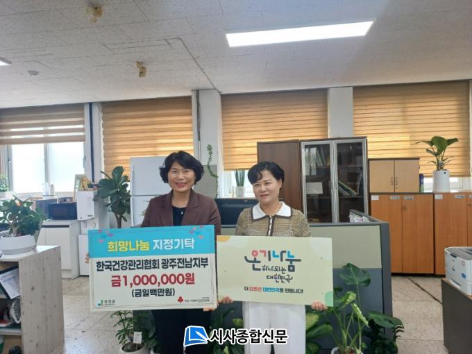 | Çѱ¹°Ç°°ü¸®Çùȸ ±¤ÁÖÀü³²ÁöºÎ, °Áø±ºÃ»¿¡ »ç¶ûÀÇ ¼º±Ý Àü´Þ |