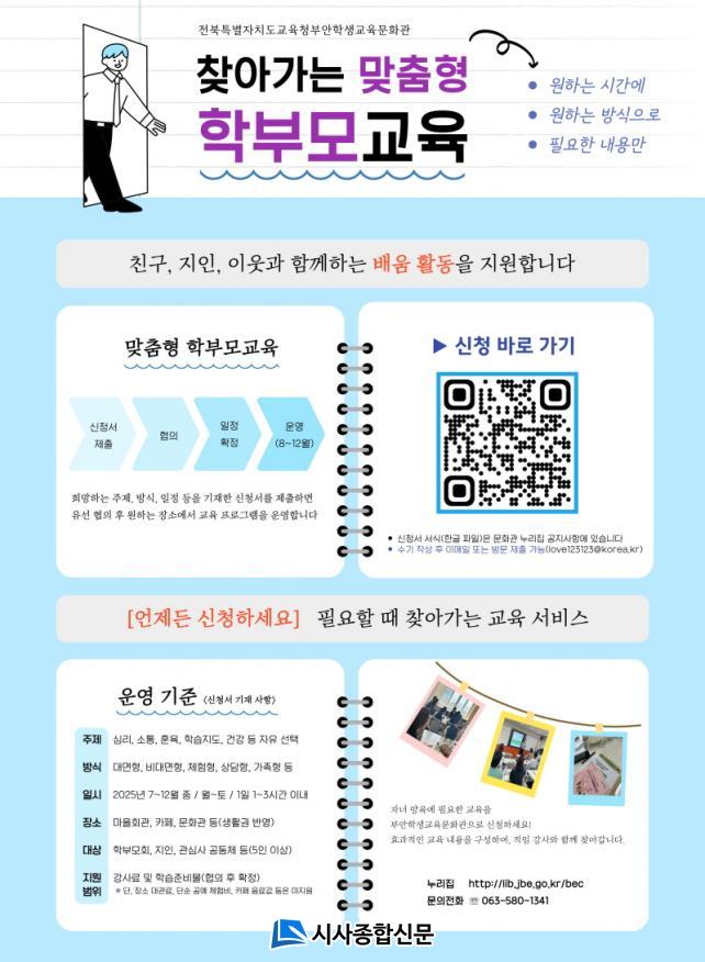 [½Ã»çÁ¾ÇսŹ® = ¿À½ÂÅà ±âÀÚ] ÀüºÏƯº°ÀÚÄ¡µµ±³À°Ã»ºÎ¾ÈÇлý±³À°¹®È°ü(°üÀå ¹Ú¼öÁø)Àº Çкθð ÁÖµµÀÇ ÀÚÀ²Àû ÇнÀ Áö¿øÀ» À§ÇÑ ¡®Ã£¾Æ°¡´Â ¸ÂÃãÇü Çкθð±³À°¡¯À» 8¿ùºÎÅÍ 12¿ù±îÁö »ó½Ã Á¢¼ö¡¤¿î¿µÇÑ´Ù°í 8ÀÏ ¹àÇû´Ù.