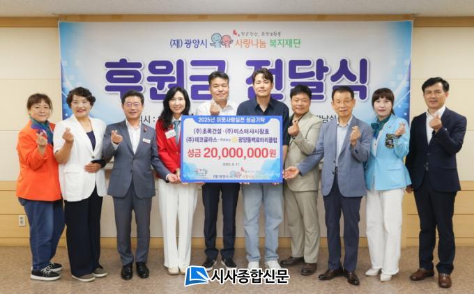 [½Ã»çÁ¾ÇսŹ® = Àå¹Î±Ô ±âÀÚ] ±¤¾ç½Ã(½ÃÀå Á¤ÀÎÈ)´Â Áö³ 8¿ù 11ÀÏ ½Ãû ¸¸³²½Ç¿¡¼ ¢ßÃʷϰǼ³(´ëÇ¥ ¼Õº´¿Ï), ¢ß¹Ì½ºÅÍ»þ½Ãâȣ(´ëÇ¥ ½Å°æÃ¶), ¢ß±Û¶ó½ºµ¥ÄÚ(´ëÇ¥ Á¶Àç½Å), ±¤¾çµ¿¹é·ÎÅ͸®Å¬·´(ȸÀå À±Ãá·ÃÀÌ ÇѸ¶À½À¸·Î ¶æÀ» ¸ð¾Æ ÁöÁ¤±âŹ±Ý 2õ¸¸ ¿øÀ» (Àç)±¤¾ç½Ã»ç¶û³ª´®º¹ÁöÀç´Ü¿¡ Àü´ÞÇß´Ù°í ¹àÇû´Ù.