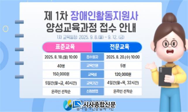 ޶óÀå¾ÖÀÎÁ¾ÇÕº¹Áö°üÀº ¿ÃÇØ Àå¾ÖÀÎȰµ¿Áö¿ø»ç ¾ç¼º±³À° ±â°üÀ¸·Î ¼±Á¤µÇ¾úÀ¸¸ç, Á¦1Â÷ ±³À°Àº 9¿ù 8ÀϺÎÅÍ 12ÀϱîÁö, Á¦2Â÷ ±³À°Àº 11¿ù 10ÀϺÎÅÍ 14ÀϱîÁö, Á¦3Â÷ ±³À°Àº 12¿ù 8ÀÏ~12ÀϱîÁö·Î ÃÑ 3ȸ ±³À°À» ½Ç½ÃÇÒ ¿¹Á¤ÀÌ´Ù.