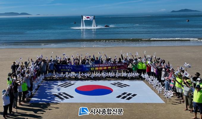 °È±â°¡ ³¡³ ÈÄ¿¡´Â ´ëÇü űرâ ÁÖº¯¿¡ ¹Ù¶÷°³ºñ űر⸦ ²È°í Âü°¡ÀÚ Àü¿øÀÌ ¡®´ëÇѹα¹ ¸¸¼¼¡¯¸¦ ¿ÜÄ¡¸ç ±¤º¹ 80ÁÖ³âÀ» ±â³äÇß´Ù. ¶ÇÇÑ ¹Ù´Ù¿¡¼´Â ¼¼Â÷°Ô »Õ´Â ¹°Áٱ⸦ Ÿ°í °øÁßÀ¸·Î ¼Ú¾Æ¿À¸£´Â ÇöóÀ× º¸µå·Î űر⸦ ÆîÄ¡´Â °ø¿¬À» ¼±º¸¿© ´«±æÀ» ²ø¾ú´Ù.
