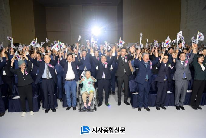 °ú°Å Ç×ÀÏ¡¤¹ÎÁÖÁ¤½Å°ú ¹Ì·¡ÀÇ Èñ¸ÁÀ» Àմ´ٴ Àǹ̸¦ ´ã¾Æ ¾Ö±¹ÀÚ Á¦Ã¢µµ Ưº°ÇÏ°Ô ±¸¼ºµÆ´Ù. À±¼®¿ Á¤ºÎ¿¡¼ ¼ö¿©°¡ º¸·ùµÆ´Ù Áö³ 8¿ù ±¹¹ÎÈÆÀå ¸ð¶õÀåÀ» ¹ÞÀº ÀÏÁ¦°Á¦µ¿¿ø ÇÇÇØÀÚ ¾ç±Ý´ö ÇҸӴϰ¡ ÇöÀå¿¡¼ Á÷Á¢ ¾Ö±¹°¡ 1ÀýÀ» ¹«¹ÝÁÖ·Î ºÒ·¯ °¨µ¿À» ÀھƳ´Ù. 2ÀýºÎÅÍ´Â ¿À¿ù¾î¸Ó´ÏÁý ¾î¸Ó´ÏµéÀÇ ¾Ö±¹°¡ Á¦Ã¢ ¿µ»ó¿¡ ¸ÂÃç Âü¼®ÀÚ Àü¿øÀÌ ÇÔ²²Çß´Ù.