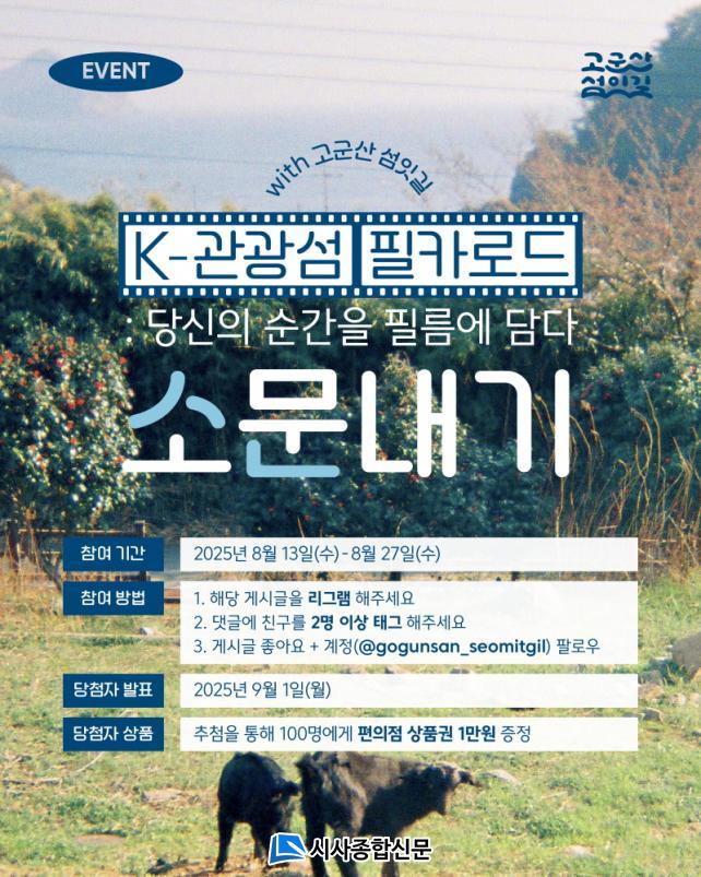 8¿ù °í±º»ê¼¶ÀÕ±æ ´Ù´ÞÀÌ À̺¥Æ® ¡¯K-°ü±¤¼¶ ÇÊÄ«·Îµå Çà»ç ¼Ò¹®³»±â¡¯¿¡ Âü¿©ÇÏ·Á¸é, °í±º»ê¼¶ÀÕ±æ °ø½Ä »çȸ°ü°è¸Á(SNS)À» ÆÈ·Î¿ì ÇÑ ÈÄ ´ñ±Û¿¡ Ä£±¸¸¦ ¼ÒȯÇϰí, ÇØ´ç °Ô½Ã¹°À» ¸®±×·¥ÇÏ¸é µÈ´Ù.
