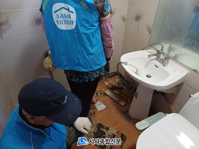 º¹Áö±âµ¿´ë´Â ÃÖ±Ù Á¶¼Õ°¡Á¤ ÇÑ °÷À» ã¾Æ ÆÄ¼ÕµÈ ÈÀå½Ç ŸÀÏÀ» ±³Ã¼ÇÏ°í ´©¼ö ¹®Á¦¸¦ ÇØ°áÇÏ´Â µî ÁÖ°Åȯ°æ °³¼± ÀÛ¾÷À» ½Ç½ÃÇß´Ù. ÇØ´ç °¡Á¤Àº ±úÁø ŸÀÏ Æ´À¸·Î ¹ú·¹°¡ µå³ªµé°í, Áö¼ÓÀûÀÎ ´©¼ö·Î ºÒÆíÀ» °Þ°í ÀÖ¾ú´ø »óȲÀ¸·Î º¹Áö±âµ¿´ë´Â ½Å¼ÓÈ÷ ÇöÀå¿¡ ÅõÀԵŠ¹Ù´Ú°ú º®¸éÀ» Á¤ºñÇϰí ŸÀÏ ½Ã°ø°ú ¹æ¼ö 󸮸¦ ¸¶¹«¸®Çϸç ÄèÀûÇϰí À§»ýÀûÀΠȯ°æÀ» ¸¶·ÃÇß´Ù.