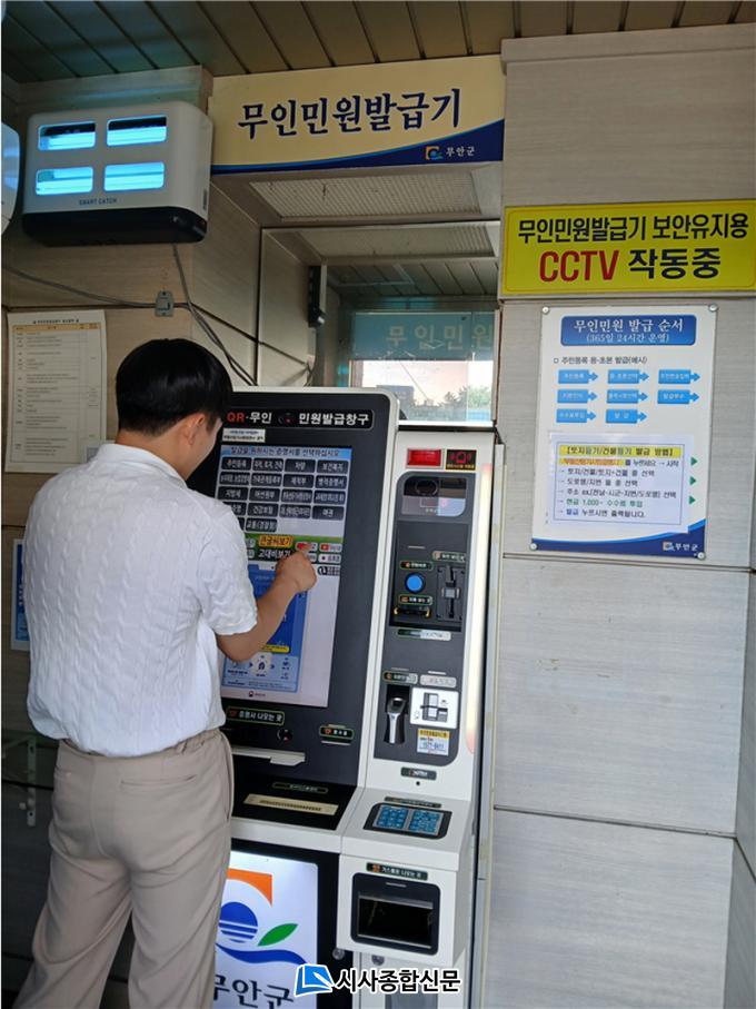 ÇöÀç ¹«¾È±º¿¡´Â ¹«Àιοø¹ß±Þ±â°¡ 17°³¼Ò ¼³Ä¡µÇ¾î ÀÖÀ¸¸ç, ±ºÃ» ¹Î¿ø½Ç, »ïÇâÀ¾ ³²¾ÇÃâÀå¼Ò, û°è¸é»ç¹«¼Ò, ¹«¾È±¹Á¦°øÇ× µî 4°³¼Ò´Â 24½Ã°£ ÀÌ¿ëÇÒ ¼ö ÀÖ´Ù.