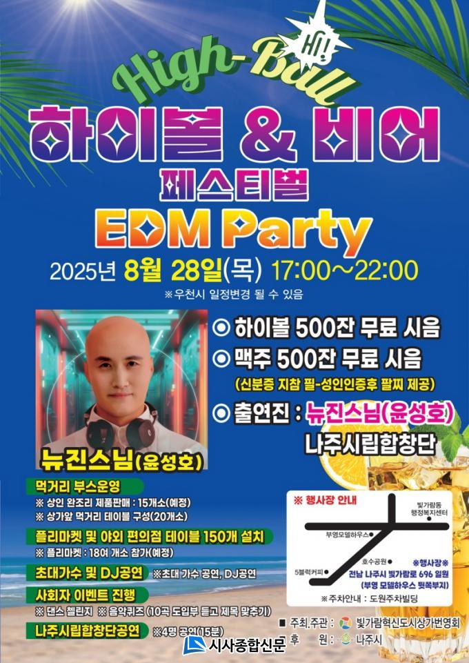 ³ªÁÖ½Ã(½ÃÀå À±º´ÅÂ)°¡ ¿À´Â 8¿ù 28ÀÏ ¿ÀÈÄ 5½ÃºÎÅÍ ºû°¡¶÷·Î 696 ÀÏ¿ø¿¡¼ ¡®2025 ³ªÁֽà ºû°¡¶÷ ÇÏÀ̺¼&ºñ¾î Æä½ºÆ¼¹ú¡¯À» ¿°í ÇÏÀ̺¼°ú ¸ÆÁÖ ½ÃÀ½ Çà»ç, DJ °ø¿¬, ¸Ô°Å¸®¿Í Çø®¸¶ÄÏ µî ´Ùä·Î¿î ÇÁ·Î±×·¥À¸·Î ½Ã¹Î°ú °ü±¤°´À» ¸ÂÀÌÇÑ´Ù.