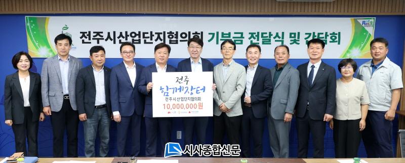 ÀÌ ÀÚ¸®¿¡¼ ÀüÁֽûê¾÷´ÜÁöÇùÀÇȸ´Â Áö¿ª»çȸ »ó»ýÀ» À§ÇÑ ±âºÎ±Ý 1000¸¸ ¿øÀ» ÀüÁֽÿ¡ Àü´ÞÇß´Ù. ¶ÇÇÑ Âü¼®ÀÚµéÀº ±âºÎ±Ý Àü´Þ ÈÄ È¯´ãÀ» ÅëÇØ »ê¾÷´ÜÁö ±â¾÷ÀÇ °øµ¿ ¹ßÀü°ú Áö¿ª°æÁ¦ Ȱ¼ºÈ ¹æ¾ÈÀ» ³íÀÇÇϱ⵵ Çß´Ù.