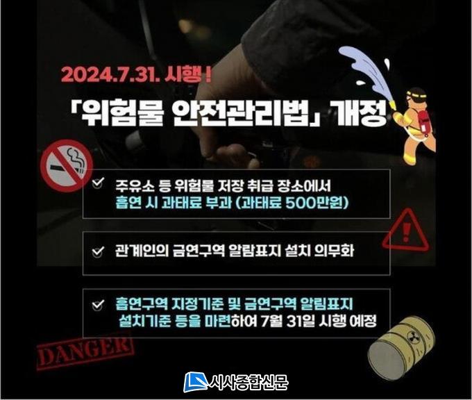 [½Ã»çÁ¾ÇսŹ® = ¿À½ÂÅà ±âÀÚ] ¿©¼ö¼Ò¹æ¼(¼Àå ¼½ÂÈ£)´Â 2024³â 7¿ù 31ÀϺÎÅÍ ½ÃÇàµÈ ¡¸À§Çè¹°¾ÈÀü°ü¸®¹ý¡¹ Á¦19Á¶ÀÇ 2(Á¦Á¶¼Ò µî¿¡¼ÀÇ Èí¿¬ ±ÝÁö) ½Å¼³¿¡ µû¸¥ ÁÖÀ¯¼Ò, À§Çè¹° ÀúÀå¼Ò, Ãë±Þ¼Ò µî ¡®Á¦Á¶¼Òµî¡¯¿¡¼ÀÇ ÈÀç ¡¤Æø¹ß·ÎºÎÅÍ ½Ã¹Î ¾ÈÀü È®º¸¸¦ À§ÇÑ Èí¿¬±ÝÁö ±ÔÁ¤ÀÇ Àû±ØÀûÀÎ È«º¸¿¡ ³ª¼¹´Ù.