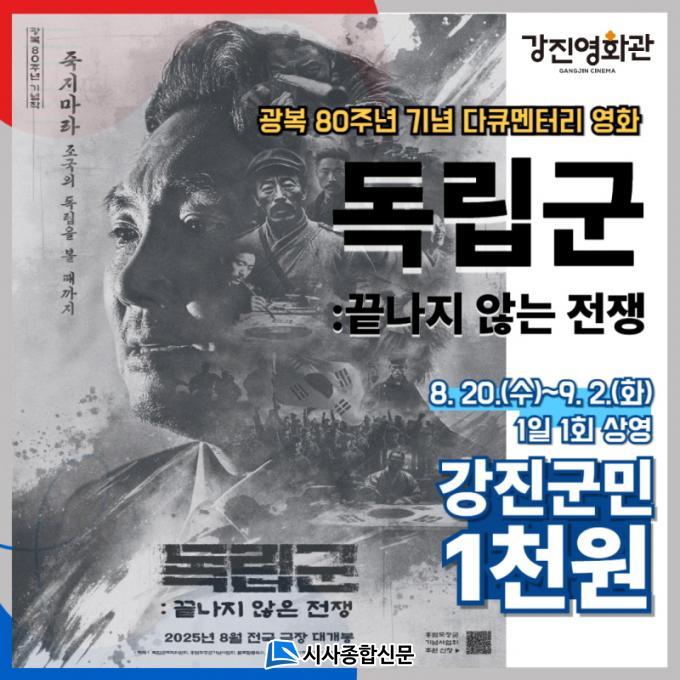 [½Ã»çÁ¾ÇսŹ® = ¿À½ÂÅà ±âÀÚ] °Áø±ºÀÌ ±¤º¹ 80ÁÖ³âÀ» ¸Â¾Æ ¼ø±¹¼±¿µéÀÇ Èñ»ý°ú µ¶¸³ Á¤½ÅÀ» ±â¸®±â À§ÇÑ ´ÙÅ¥¸àÅ͸® ¿µÈ ¡®µ¶¸³±º-³¡³ªÁö ¾ÊÀº ÀüÀÀ» Ưº°»ó¿µÇÑ´Ù. À̹ø »ó¿µÀº 20ÀϺÎÅÍ 2ÁÖ°£ 1ÀÏ 1ȸ¾¿ ÁøÇàµÈ´Ù.