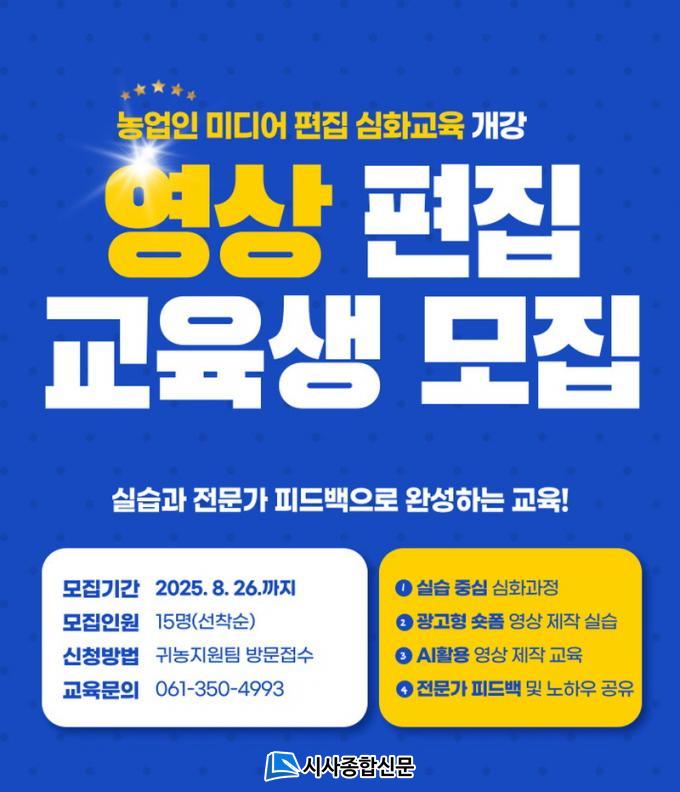 À̹ø ½Éȱ³À°Àº ¿ÃÇØ »ó¹Ý±â ±âÃʱ³À°À» À̼öÇ߰ųª ¿µ»ó Á¦ÀÛ¿¡ ´ëÇÑ ±âº» ÀÌÇØ¸¦ °®Ãá ³ó¾÷ÀÎÀ» ´ë»óÀ¸·Î ÁøÇàµÇ¸ç, º¸´Ù Àü¹®ÀûÀÎ ÃÔ¿µ ¹× ÆíÁý ±â¼úÀ» ½ÀµæÇÒ ¼ö ÀÖµµ·Ï ÃÑ 10ȸ °úÁ¤À¸·Î ¿µ±¤±º³ó¾÷±â¼ú¼¾ÅÍ Á¤º¸È ±³À°Àå¿¡¼ ¿î¿µµÈ´Ù. ƯÈ÷, ÃֽŠƮ·»µå¿¡ ¸ÂÃá ¼ôÆû ÄÜÅÙÃ÷ ½ÉÈ Á¦ÀÛ ±â¹ý°ú ³ó¾÷ÀÎÀÇ Æ¯¼ºÀ» ¹Ý¿µÇÑ ½Ç½À Á᫐ ±³À°ÀÌ °ÈµÉ ¿¹Á¤ÀÌ´Ù.