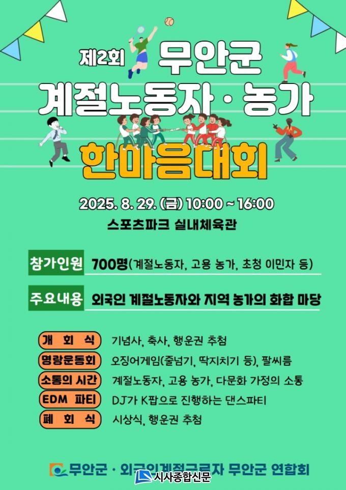 À̹ø Çà»ç´Â Çʸ®ÇÉ, ¶ó¿À½º, º£Æ®³² µîÁö¿¡¼ ¿Â ¿Ü±¹ÀÎ °èÀý³ëµ¿ÀÚ¿Í Áö¿ª ³ó°¡, °áÈ¥À̹ÎÀÚ°¡ ¼ÒÅëÇϰí ÈÇÕÇÏ´Â ÀÚ¸®·Î, ¿Ü±¹ÀΰèÀý³ëµ¿ÀÚ ¹«¾È±º¿¬ÇÕȸ(ȸÀå °Çà¿ø)°¡ ÁÖÃÖÇÏ°í ¹«¾È±º °¡Á·¼¾ÅÍ¿Í ¹«¾È±º ¸¶À»°ü¸® »çȸÀûÇùµ¿Á¶ÇÕÀÌ Çù¾÷ÇØ ÁغñÇß´Ù.