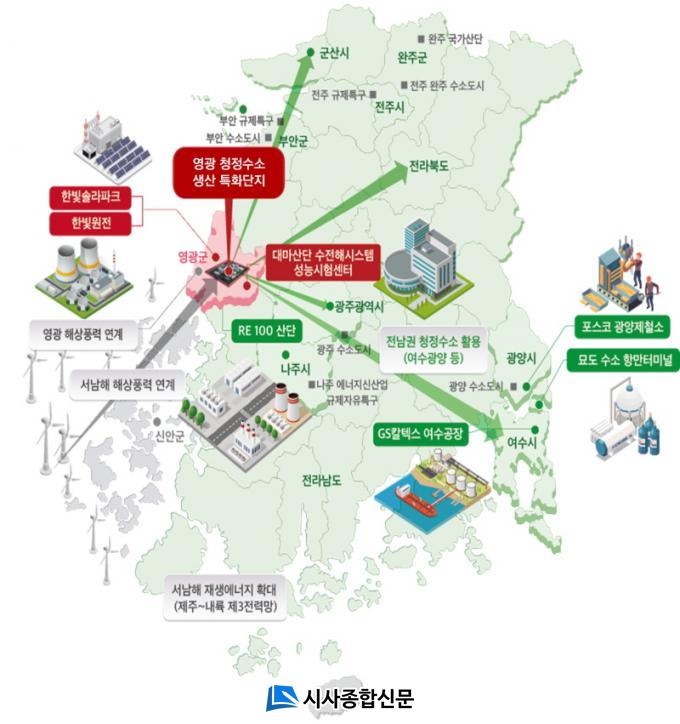 Àü³²µµ´Â ¿µ±¤ ´ë¸¶»ê´Ü ¹èÈĺÎÁö(2¸¸ 5õ Æò)¿Í ´ë¸¶»ê´Ü(7¸¸ Æò)¿¡ ÃÑ»ç¾÷ºñ 2Á¶ 7õ¾ï ¿ø ±Ô¸ðÀÇ ±¹³» ÃÖ´ë ¼ö¼ÒƯȴÜÁö¸¦ Á¶¼ºÇϰí, 1´Ü°è·Î 500MW±Þ ûÁ¤¼ö¼Ò »ý»ê½Ã¼³ ±¸Ãà ÈÄ ÇâÈÄ 1GW±îÁö È®ÀåÇÒ °èȹÀÌ´Ù.