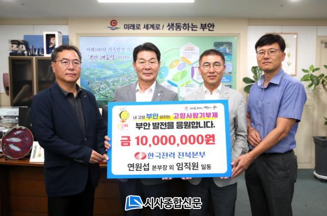 | Çѱ¹Àü·Â°ø»ç ÀüºÏº»ºÎ, ºÎ¾È±º °íÇâ»ç¶û±âºÎ±Ý 1000¸¸¿ø ±âºÎ |