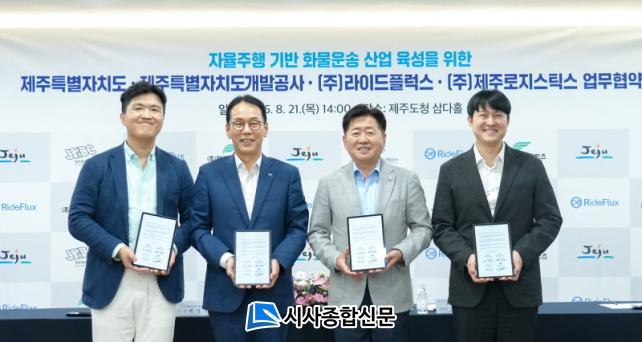 Á¦ÁÖµµ´Â 21ÀÏ µµÃ» »ï´ÙȦ¿¡¼ Á¦ÁÖÆ¯º°ÀÚÄ¡µµ°³¹ß°ø»ç, ÀÚÀ²ÁÖÇà Àü¹®±â¾÷ ¢ß¶óÀ̵åÇ÷°½º, ¹°·ù±â¾÷ ¢ßÁ¦ÁÖ·ÎÁö½ºÆ½½º¿Í ¡®ÀÚÀ²ÁÖÇà ±â¹Ý ȹ°¿î¼Û »ê¾÷ À°¼º¡¯ ¾÷¹«Çù¾àÀ» ü°áÇß´Ù.