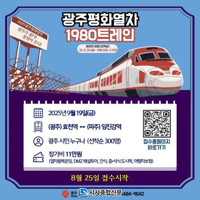 Áö³ 6¿ù¿¡ ÀÌ¾î µÎ ¹øÂ°·Î ¿îÇàÇÏ´Â ±¤ÁÖÆòÈ¿Â÷´Â ÆòÈ¿Í ÅëÀÏÀ» ÇâÇÑ °£ÀýÇÑ ¿¸ÁÀ» ½Æ°í ȿõ¿ªÀ» Ãâ¹ßÇØ ÆÄÁÖ ºñ¹«ÀåÁö´ë(DMZ)·Î ÇâÇÑ´Ù. ±¤Áֽô ÆòÈ¿Â÷¸¦ ÅëÇØ ½Ã¹Î°ú ÇÔ²² ÆòÈ¿Í ÅëÀÏÀÇ Àǹ̸¦ µÇ»õ±â°í ±¤ÁÖÀÇ ¹ÎÁÖ¡¤ÆòÈ Á¤½ÅÀ» È®»ê½ÃŰ´Â °è±â¸¦ ¸¶·ÃÇÒ °èȹÀÌ´Ù.