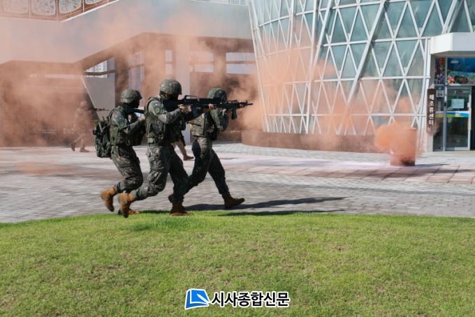 | ¿Ïµµ±º, À»Áö¿¬½À ½ÇÁ¦ ÈÆ·Ã ¹Î.°ü.±º.°æ ÇÕµ¿ ½Ç½Ã ÇØÁ¶·ù¼¾ÅÍ¿¡¼ ½Ã¼³¹° Æø¹ß¹° Å×·¯ ´ëºñ ´ëÀÀ ÈÆ·Ã ÁøÇà |