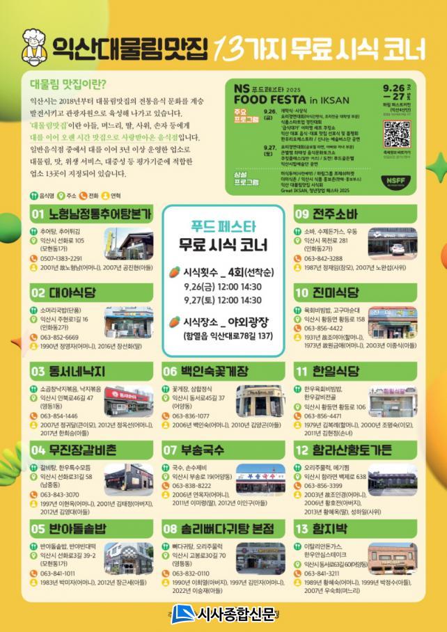 ÀÍ»ê½Ã´Â ÀüÅëÀÇ ¸À°ú Á¤¼ºÀ» ÁöÄѿ '´ë¹°¸² ¸ÀÁý' 13°³¼Ò¸¦ ÃÖÁ¾ ¼±Á¤Çß´Ù°í 25ÀÏ ¹àÇû´Ù.