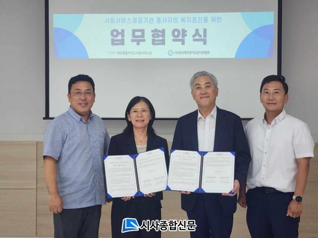 [½Ã»çÁ¾ÇսŹ® = °í¼º¹Î ±âÀÚ] Á¦ÁÖÆ¯º°ÀÚÄ¡µµ»çȸ¼ºñ½º¿ø(¿øÀå ¹®¿øÀÏ)Àº 21ÀÏ Çѱ¹Àç°¡Àå±â¿ä¾ç±â°üÇùȸ(ȸÀå ÀÓ¿ë¹Î)¿Í µµ³» »çȸ¼ºñ½º Á¾»çÀÚµéÀÇ ¿ª·® °È¸¦ µµ¸ðÇϱâ À§ÇØ ¾÷¹« Çù¾àÀ» ü°áÇß´Ù.