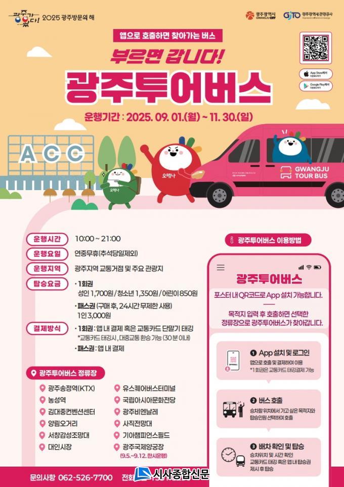 ¹ö½º´Â ¸ÅÀÏ ¿ÀÀü 10½ÃºÎÅÍ ¹ã 9½Ã±îÁö ¿îÇàÇϸç, KIAŸÀ̰ÅÁî Ȩ°æ±â°¡ ÀÖ´Â ³¯Àº ¹ã 10½Ã30ºÐ±îÁö ¿¬Àå ¿îÇàÇÑ´Ù. ¿ä±ÝÀº 1ȸ ±âÁØ ¼ºÀÎ 1700¿ø, û¼Ò³â 1350¿ø, ¾î¸°ÀÌ 850¿øÀÌ´Ù. ¡®±¤ÁÖÅõ¾î¹ö½º ¾ÖÇø®ÄÉÀ̼ǡ¯ °áÁ¦ ȤÀº ž½Â ÈÄ ´Ü¸»±â ű׸¦ ÅëÇØ °áÁ¦ÇÒ ¼ö ÀÖ´Ù. ´Ü¸»±â °áÁ¦ ½Ã¿¡´Â ½Ã³»¹ö½º¡¤ÁöÇÏö ȯ½Âµµ °¡´ÉÇÏ´Ù.