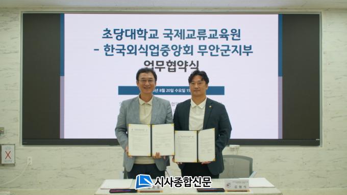Çù¾à½Ä¿¡´Â ÃÊ´ç´ëÇб³ ÀÓÁøÈ£ ±¹Á¦±³·ù±³À°¿øÀå°ú Çѱ¹¿Ü½Ä¾÷Áß¾Óȸ ¹«¾È±ºÁöºÎ ±èÇü½Ä ÁöºÎÀåÀ» ºñ·ÔÇØ Áö¿ª ¿Ü½Ä¾÷ ¾÷ÁÖ 20¿© ¸í°ú º»±³ À¯ÇлýµéÀÌ Âü¼®ÇÏ¿© »óÈ£ Çù·Â¿¡ ´ëÇÑ ±â´ë°¨À» µå·¯³Â´Ù.