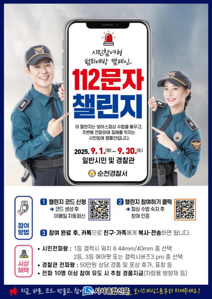 | ¼øÃµ°æÂû¼, Àü±¹ ÃÖÃÊ ¡®112 ¹®ÀÚ Ã§¸°Áö¡¯·Î º¸À̽ºÇÇ½Ì ¿¹¹æ ¼±µµ ½Ã¹Î Âü¿©Çü Ä·ÆäÀÎ ÅëÇØ 9¿ù ÇÑ´Þ °£ º¸À̽ºÇÇ½Ì ¿¹¹æ¿¡ ÃÑ·Â |