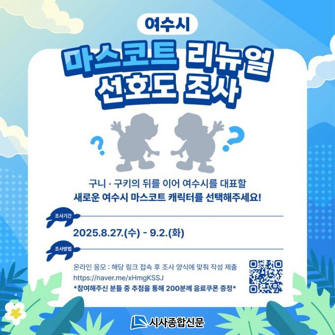 [½Ã»çÁ¾ÇսŹ® = ¿À½ÂÅà ±âÀÚ] ¿©¼ö½Ã(½ÃÀå Á¤±â¸í)´Â 25³â ¸¸¿¡ ¸®´º¾óµÇ´Â ¸¶½ºÄÚÆ®(±¸Å°¡¤±¸´Ï) µðÀÚÀÎÀ» ¼±Á¤Çϱâ À§ÇØ 8¿ù 27ÀϺÎÅÍ 9¿ù 2ÀϱîÁö 7Àϰ£ ¿Â¶óÀÎÀ¸·Î ¼±È£µµ Á¶»ç¸¦ ½Ç½ÃÇÑ´Ù.