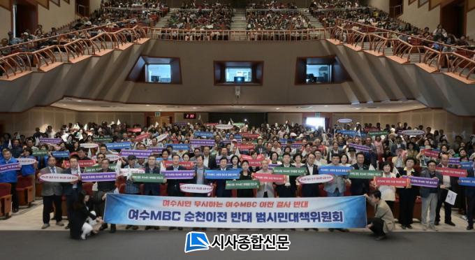 ¡®¿©¼öMBC ¼øÃµÀÌÀü ¹Ý´ë ¹ü½Ã¹Î´ëÃ¥À§¿øÈ¸(ÀÌÇÏ ´ëÃ¥À§)¡¯°¡ 27ÀÏ ¿ÀÈÄ 2½Ã ¿©¼ö½Ã¹Îȸ°ü¿¡¼ Ãâ¹ü½ÄÀ» °®°í, ¼±¾ð¹®À» ÅëÇØ ¡°½Ã¹Î Àǰ߼ö·Å ¾ø´Â ÀϹæÀû ÀÌÀüÃßÁøÀ» Áï°¢ Áß´ÜÇϰí öȸÇ϶󡱸ç À̰°ÀÌ ¹àÇû´Ù.